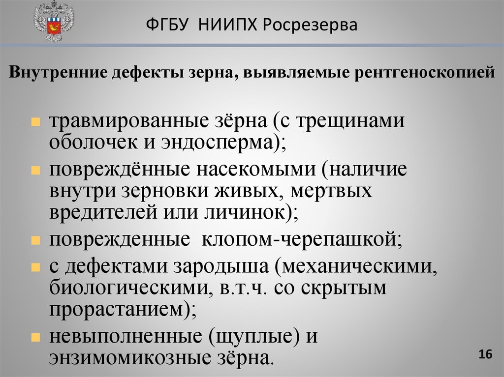 ФГБУ НИИПХ РосрезерваВнутренние дефекты зерна, выявляемые рентгеноскопией