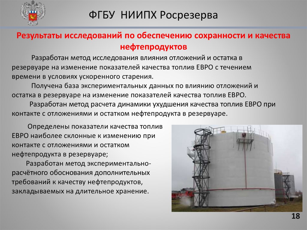 ФГБУ НИИПХ РосрезерваРезультаты исследований по обеспечению сохранности и качества