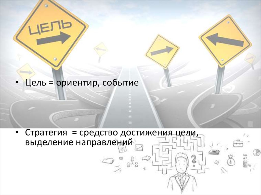 • Цель = ориентир, событие• Стратегия = средство достижения цели,