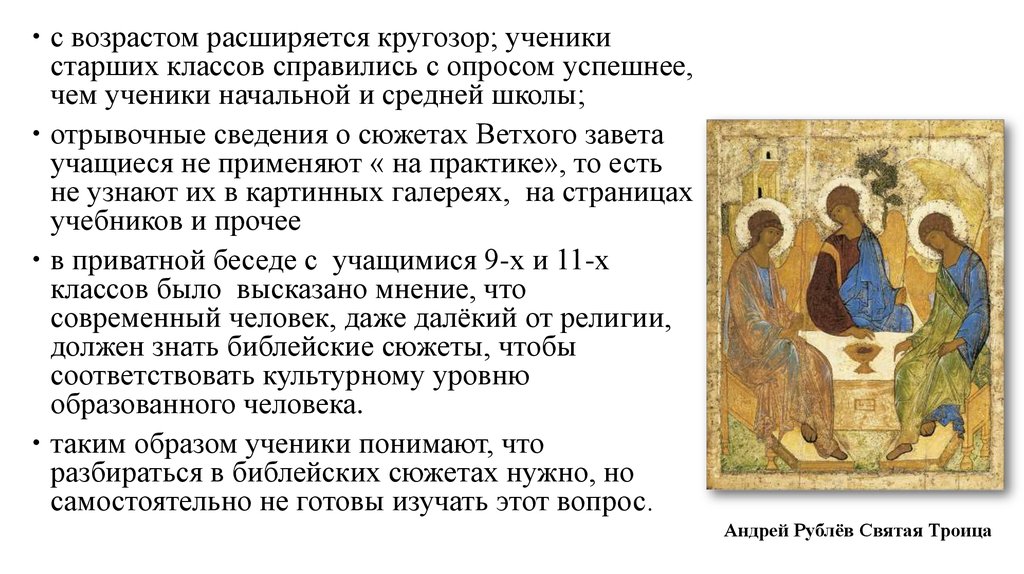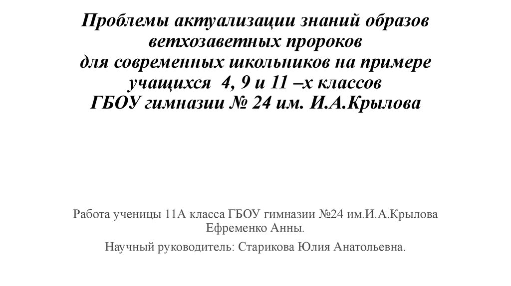 1. Проблемы актуализации знаний образов ветхозаветных пророков для современных школьников на примере учащихся 4, 9 и 11 –х классов