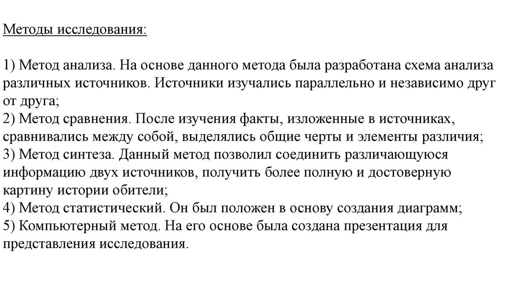 Методы исследования:1) Метод анализа. На основе данного метода была разработана схема анализа