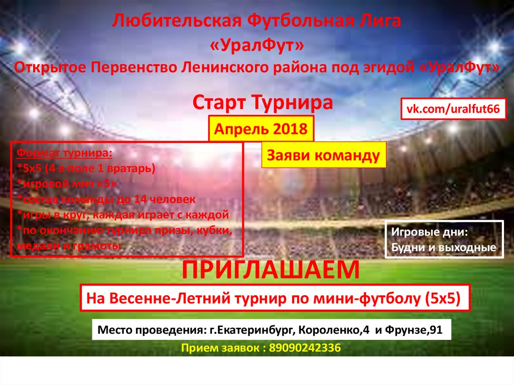 1. Любительская Футбольная Лига «УралФут» Открытое Первенство Ленинского района под эгидой «УралФут»