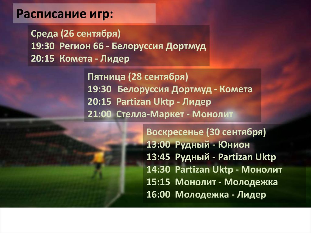 Расписание игр:Среда (26 сентября)