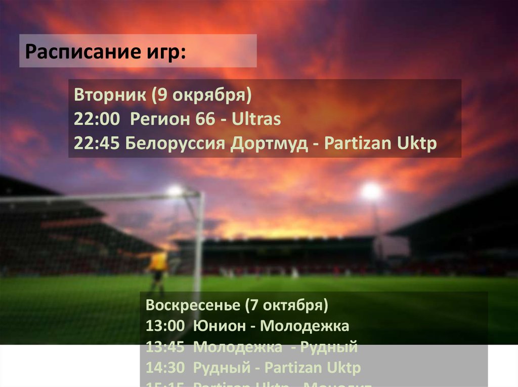 Расписание игр:Вторник (9 окрября)