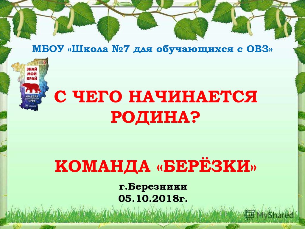 МБОУ «Школа №7 для обучающихся с ОВЗ». С чего начинается родина. Команда «Берёзки»