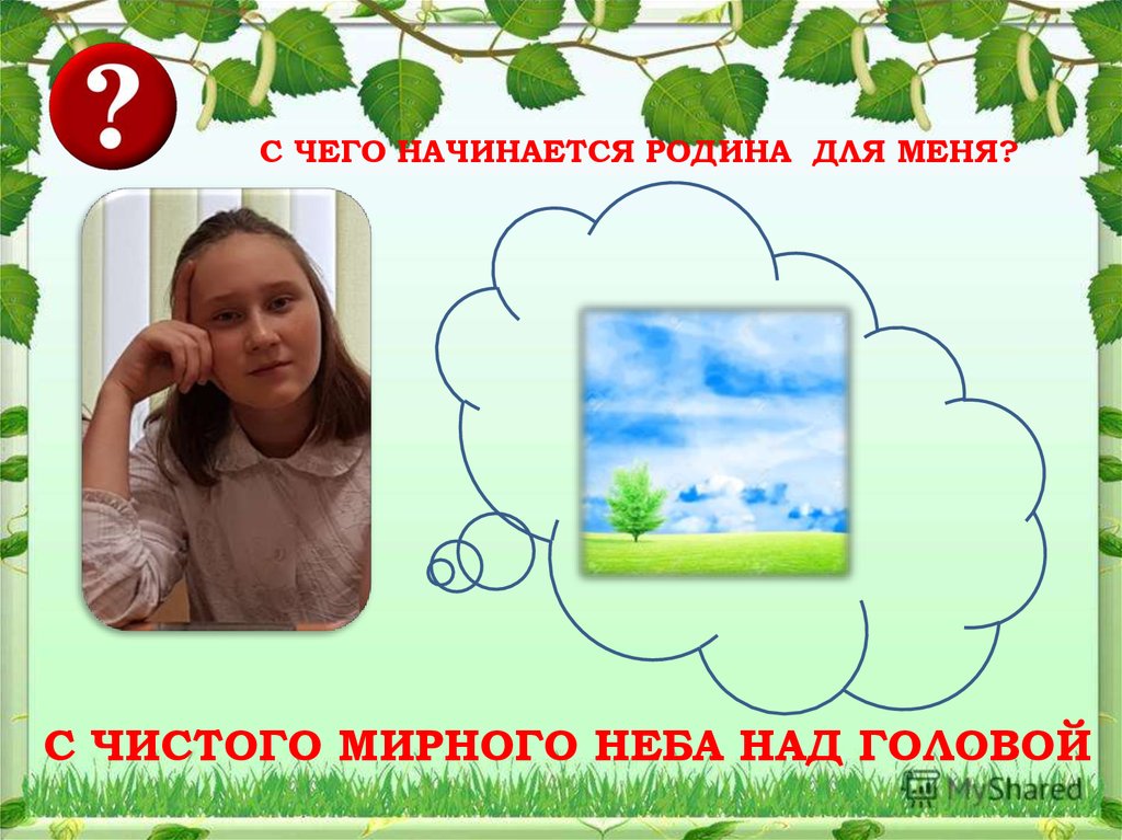 С ЧЕГО НАЧИНАЕТСЯ РОДИНА ДЛЯ МЕНЯ?С ЧИСТОГО МИРНОГО НЕБА НАД ГОЛОВОЙ