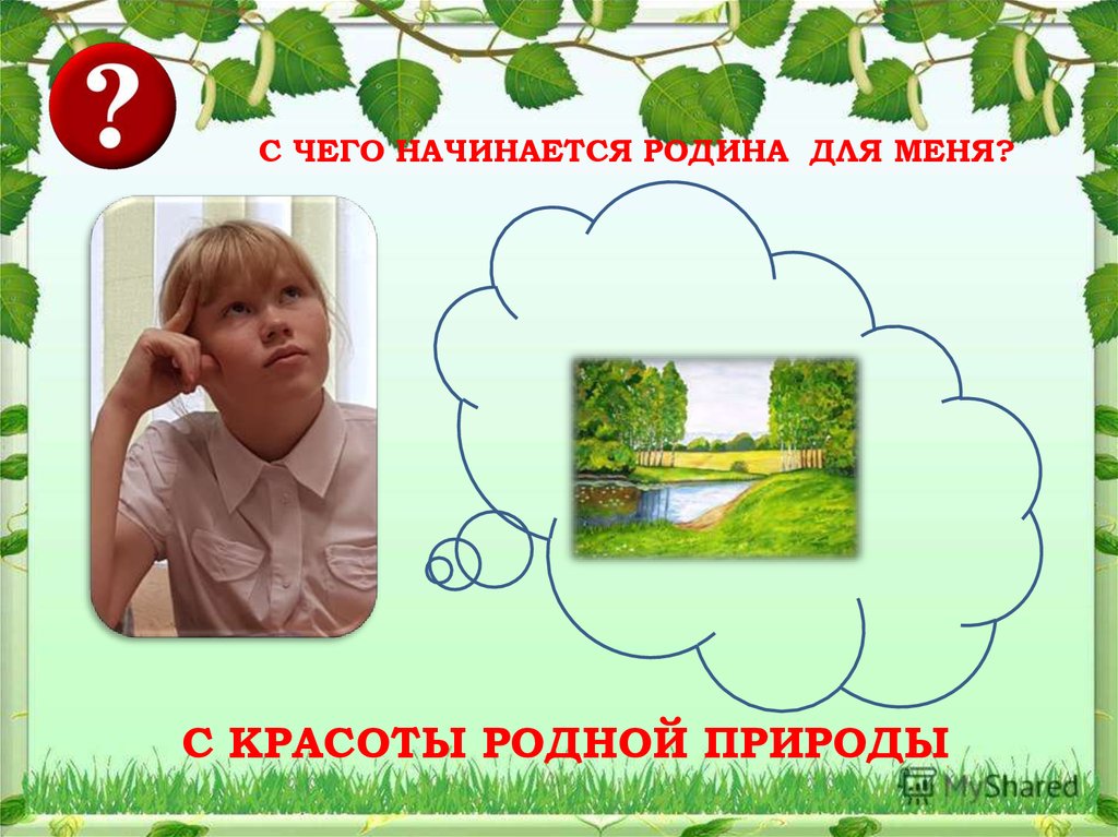 С ЧЕГО НАЧИНАЕТСЯ РОДИНА ДЛЯ МЕНЯ?С КРАСОТЫ РОДНОЙ ПРИРОДЫ