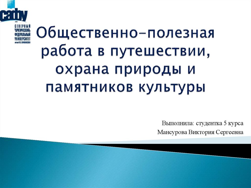 Выполнила: студентка 5 курсаМансурова Виктория Сергеевна