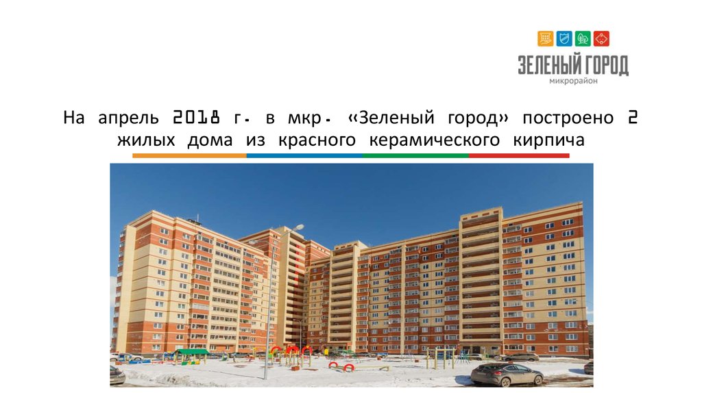 На апрель 2018 г. в мкр. «Зеленый город» построено 2жилых дома из красного керамического кирпича