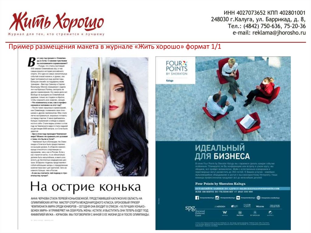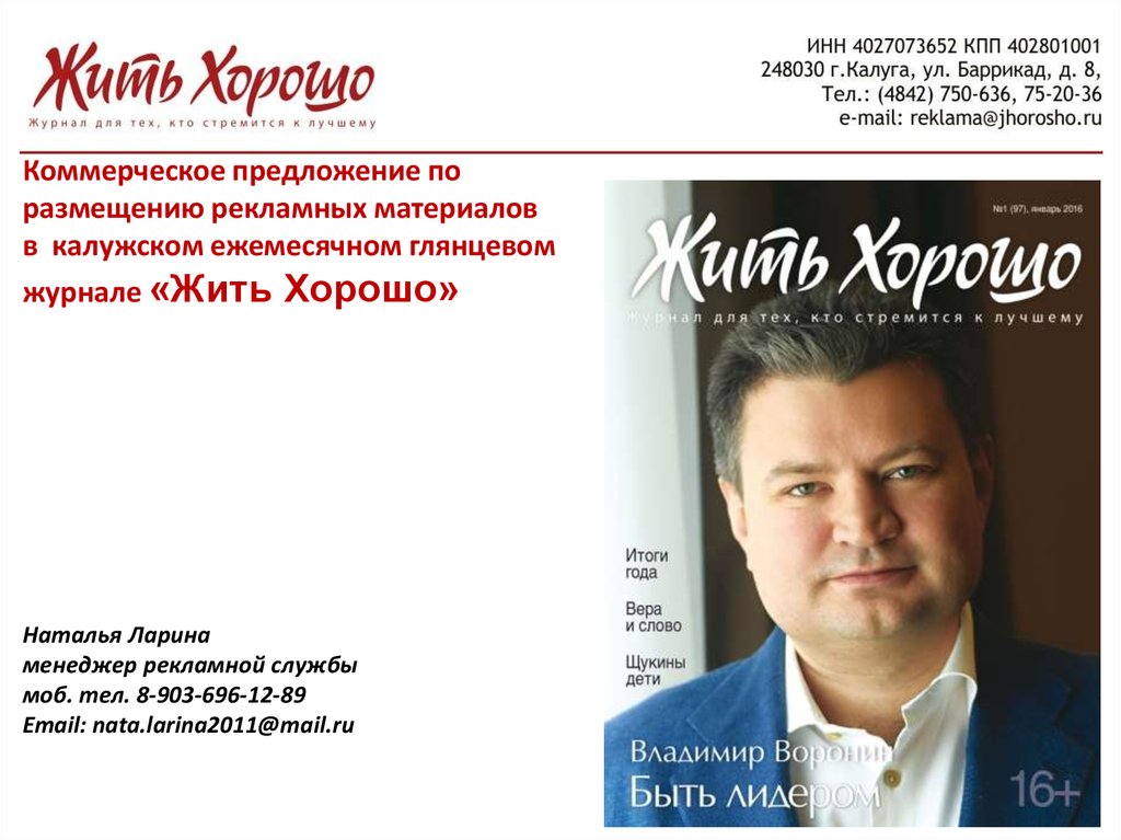 Коммерческое предложение по размещению рекламных материалов в калужском ежемесячном глянцевом журнале «Жить Хорошо»