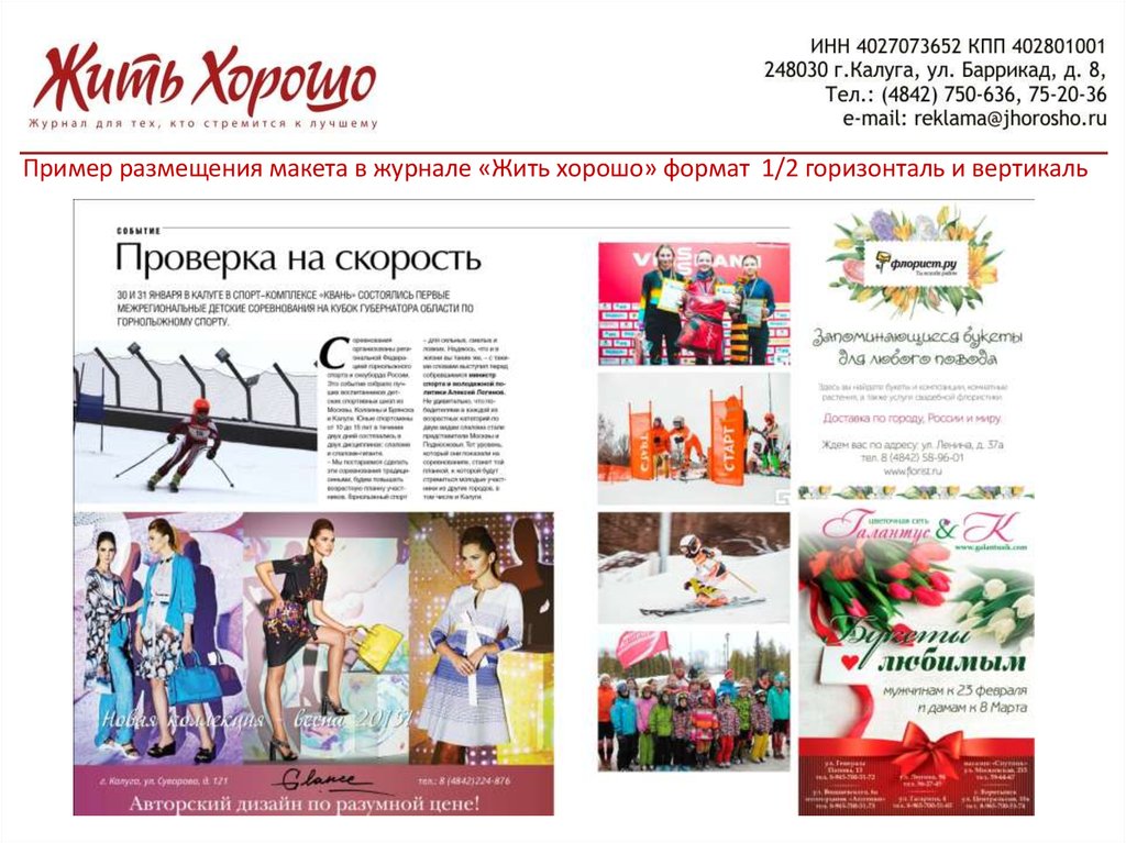 Пример размещения макета в журнале «Жить хорошо» формат 1/2 горизонталь и вертикаль6.