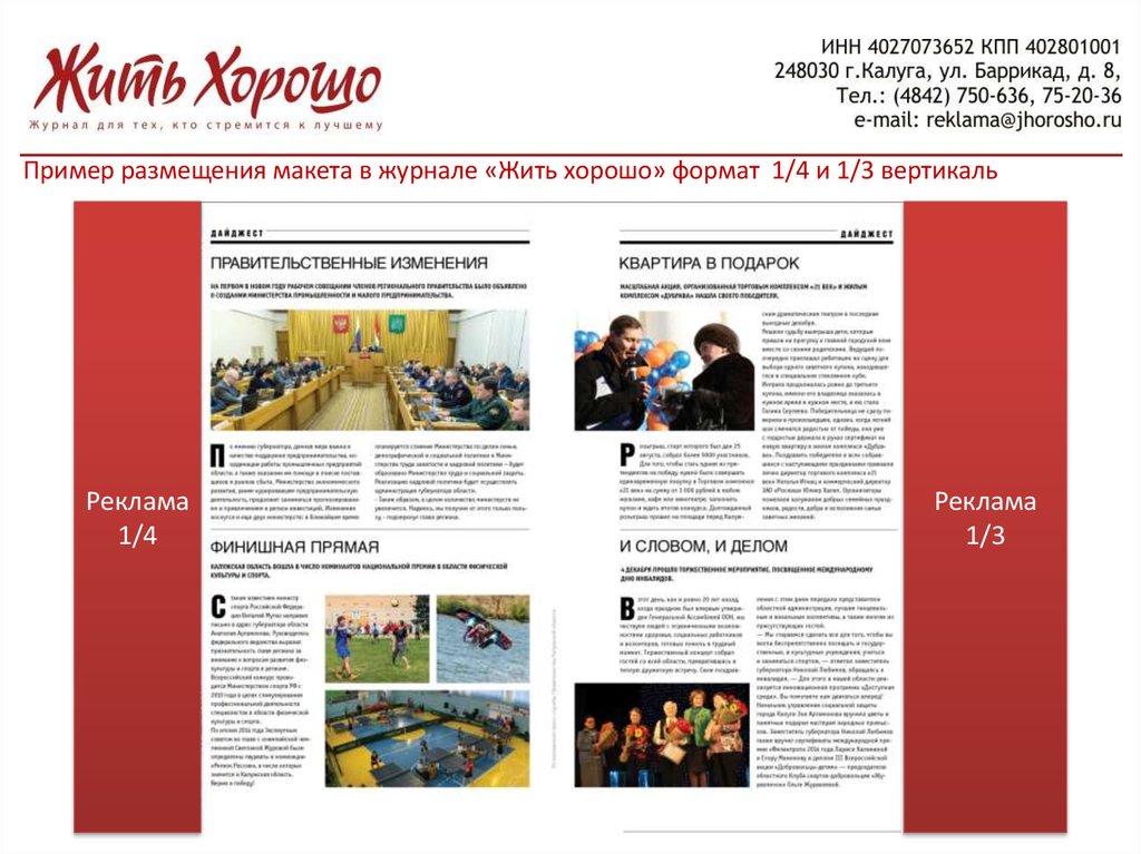 Пример размещения макета в журнале «Жить хорошо» формат 1/4 и 1/3 вертикальРеклама