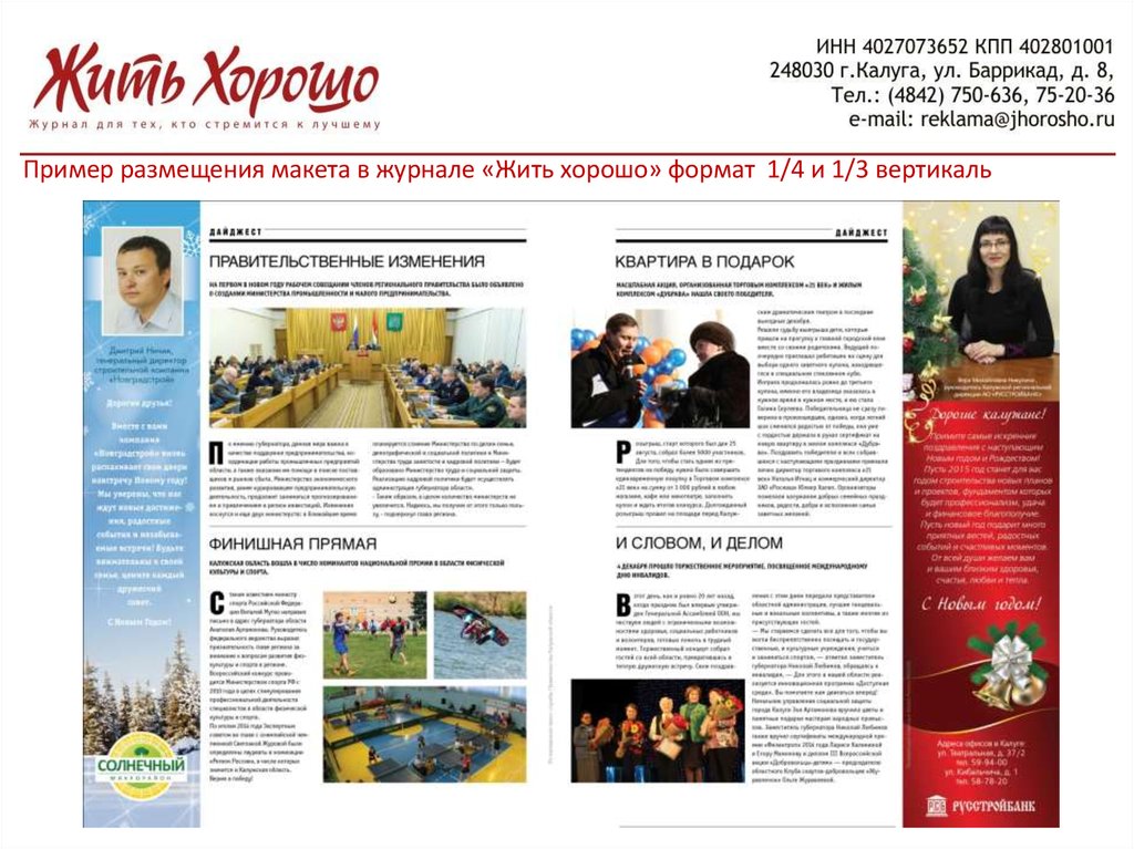 Пример размещения макета в журнале «Жить хорошо» формат 1/4 и 1/3 вертикаль8.