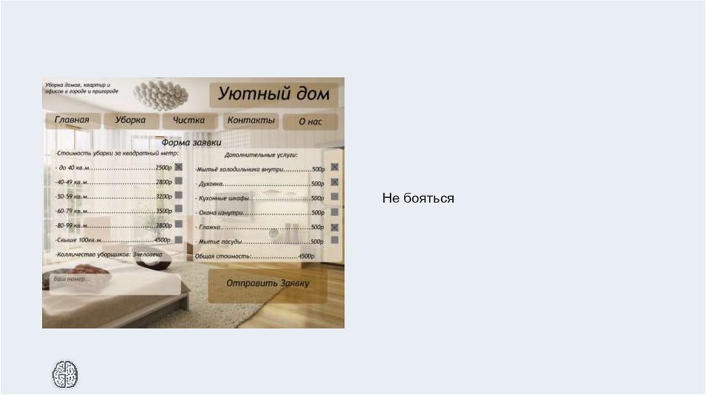 Создание формы заказа уборки в домах с возможностью предварительного просчета стоимости услуг