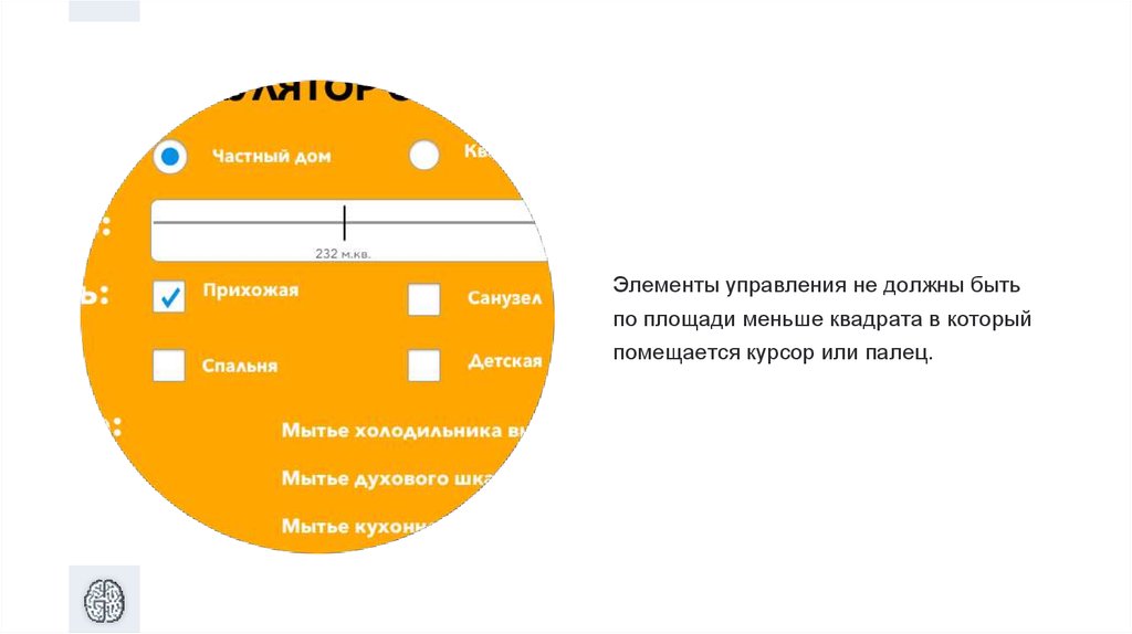 Элементы управления не должны бытьпо площади меньше квадрата в который