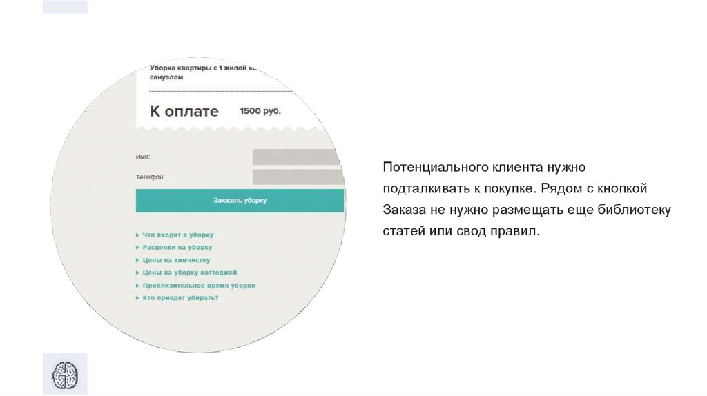 Потенциального клиента нужноподталкивать к покупке. Рядом с кнопкой