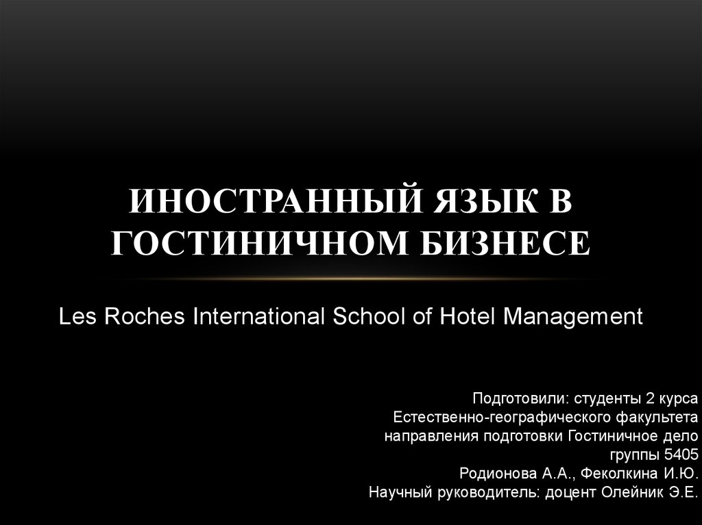 ИНОСТРАННЫЙ ЯЗЫК ВГОСТИНИЧНОМ БИЗНЕСЕ