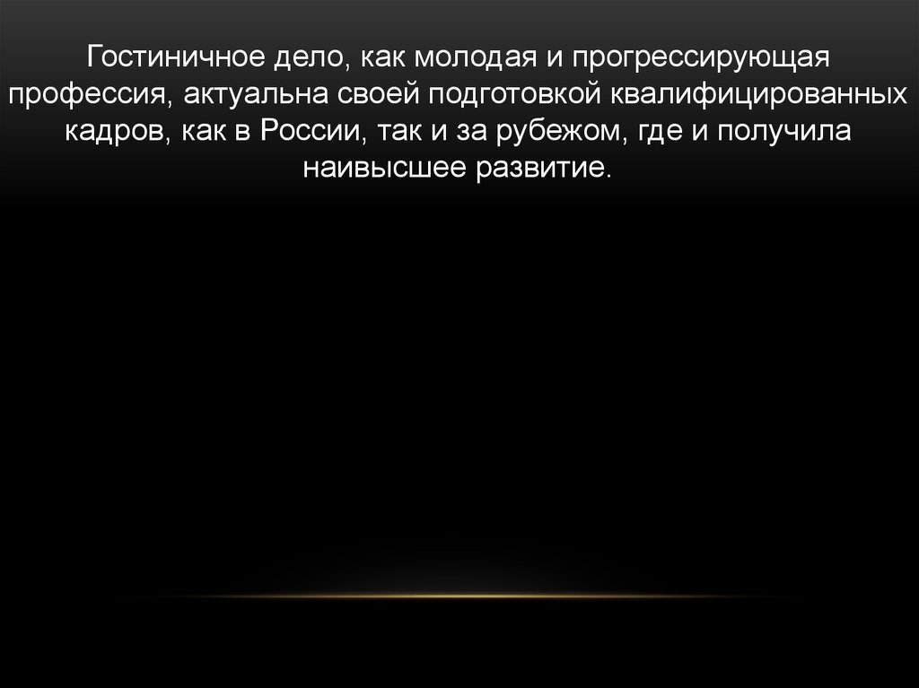Гостиничное дело, как молодая и прогрессирующаяпрофессия, актуальна своей подготовкой квалифицированных