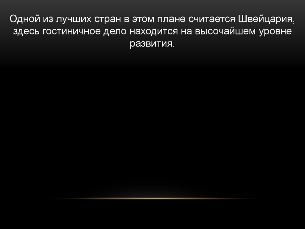 Одной из лучших стран в этом плане считается Швейцария,здесь гостиничное дело находится на высочайшем уровне