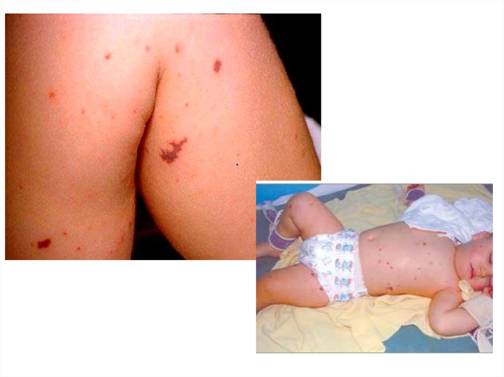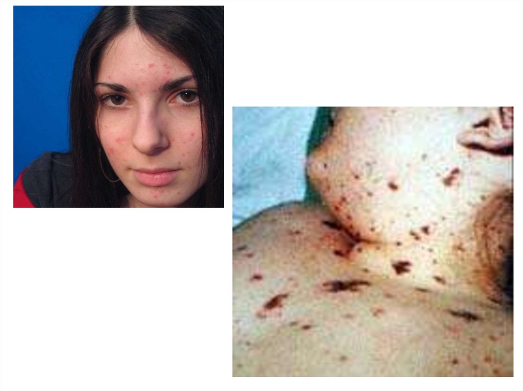 - могут наблюдаться кровоизлияния в склеру, слизистые оболочки