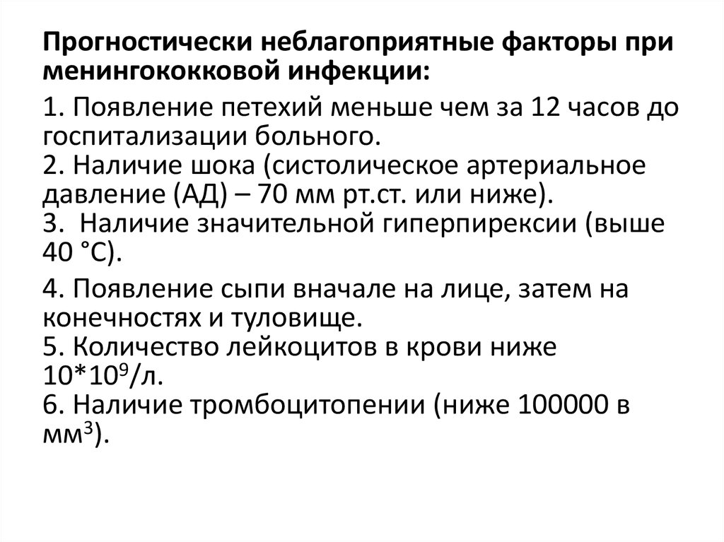 Прогностически неблагоприятные факторы применингококковой инфекции: