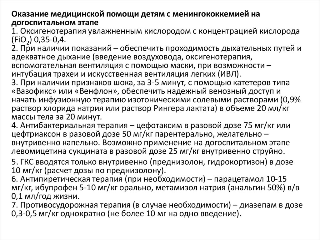 Оказание медицинской помощи детям с менингококкемией надогоспитальном этапе