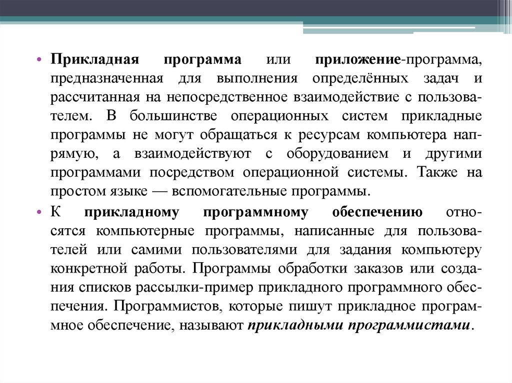 рассчитанная на непосредственное взаимодействие с пользователем. В большинстве операционных систем прикладные
