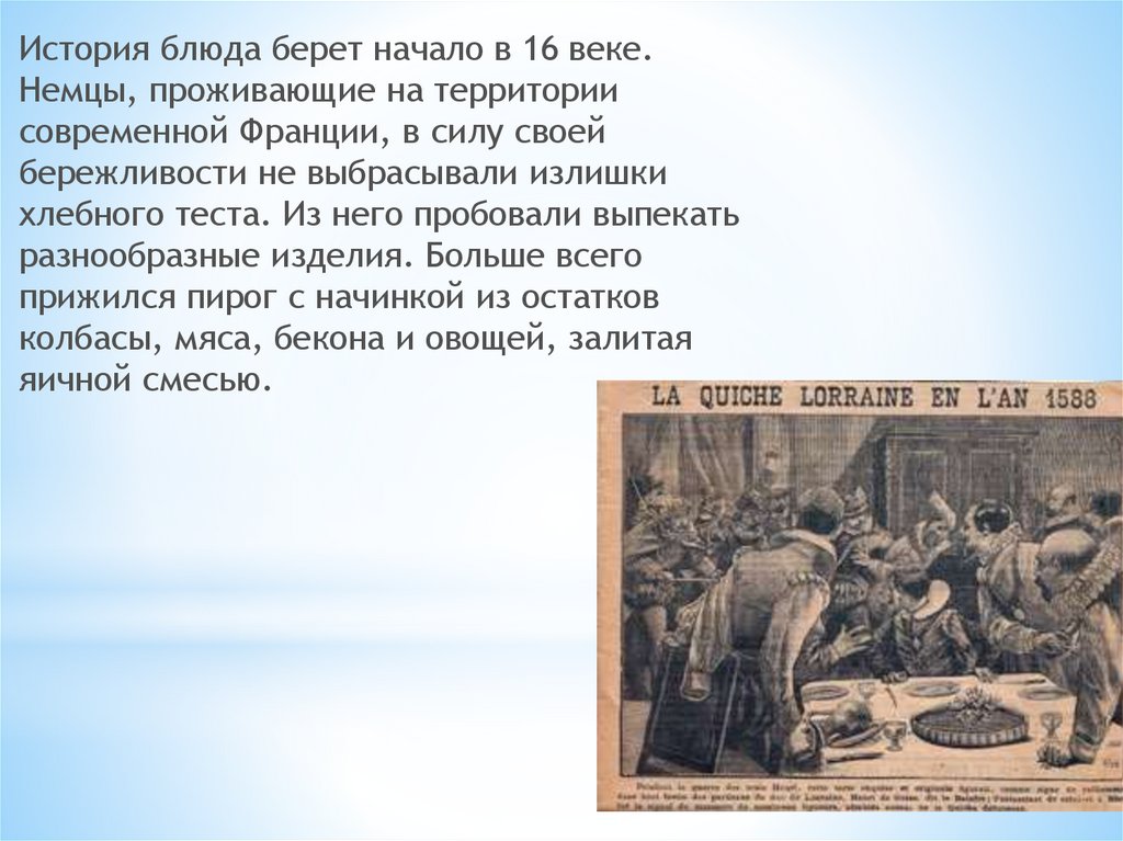 История блюда берет начало в 16 веке.Немцы, проживающие на территории