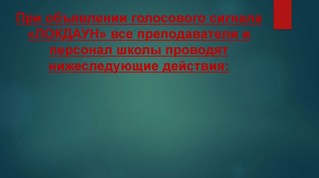 Пошаговые действия учащихся и коллектива школы, а также посетителей при объявлении сигнала «Локдаун»