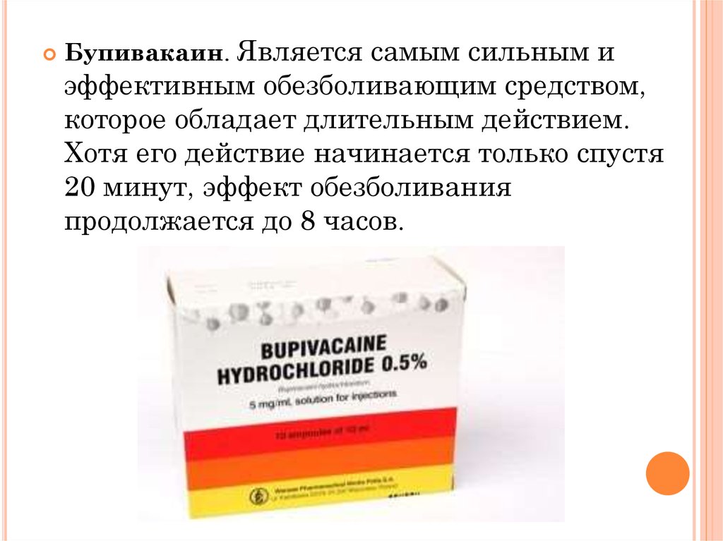 Бупивакаин. Является самым сильным иэффективным обезболивающим средством,