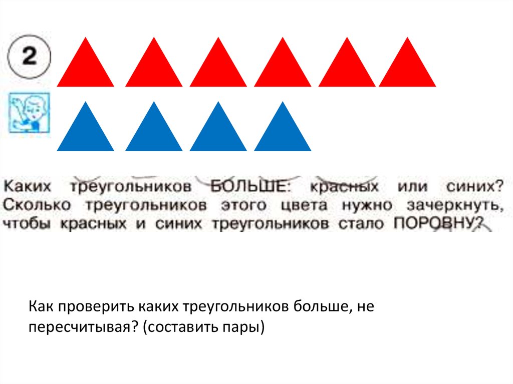 Как проверить каких треугольников больше, непересчитывая? (составить пары)
