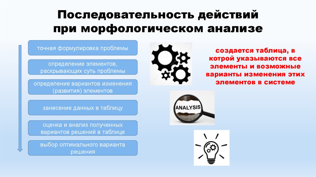 Последовательность действийпри морфологическом анализе