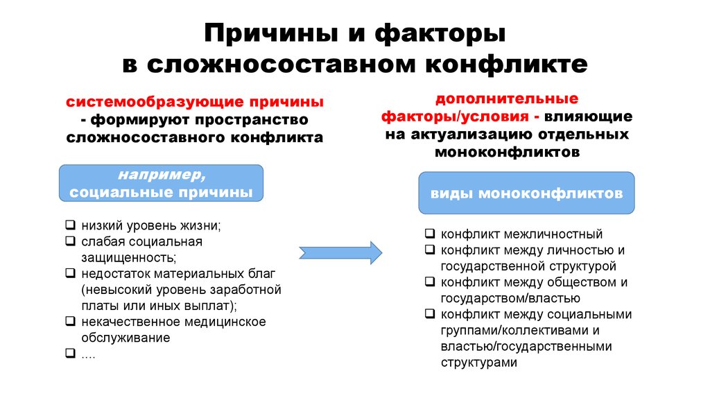 Причины и факторыв сложносоставном конфликте