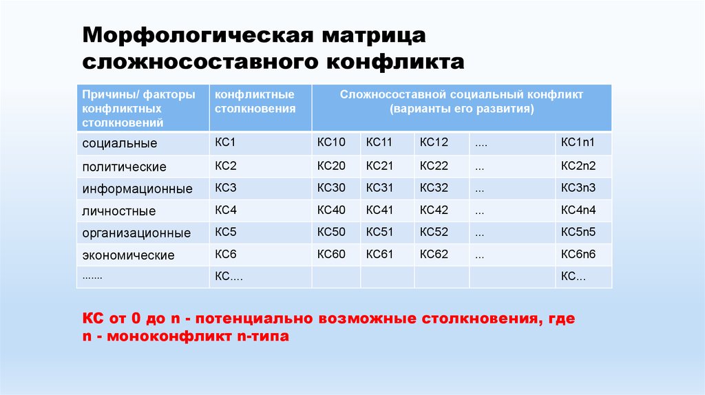 Морфологическая матрицасложносоставного конфликта