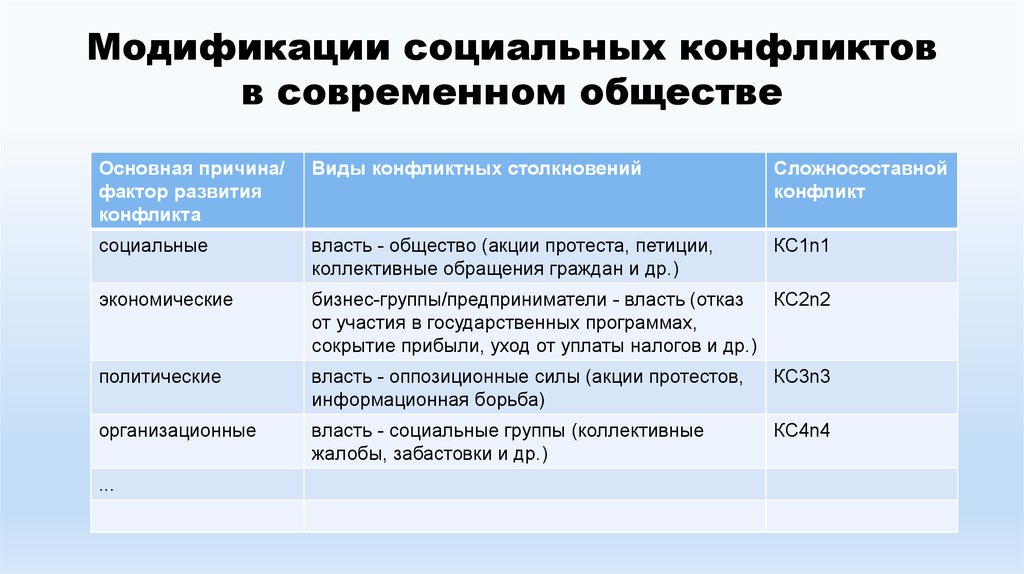 Модификации социальных конфликтовв современном обществе