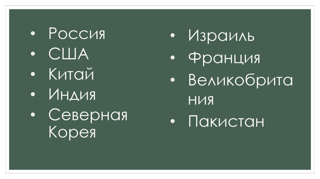 МОНАКО40. Назовите государства, состоящие в ядерном клубе?