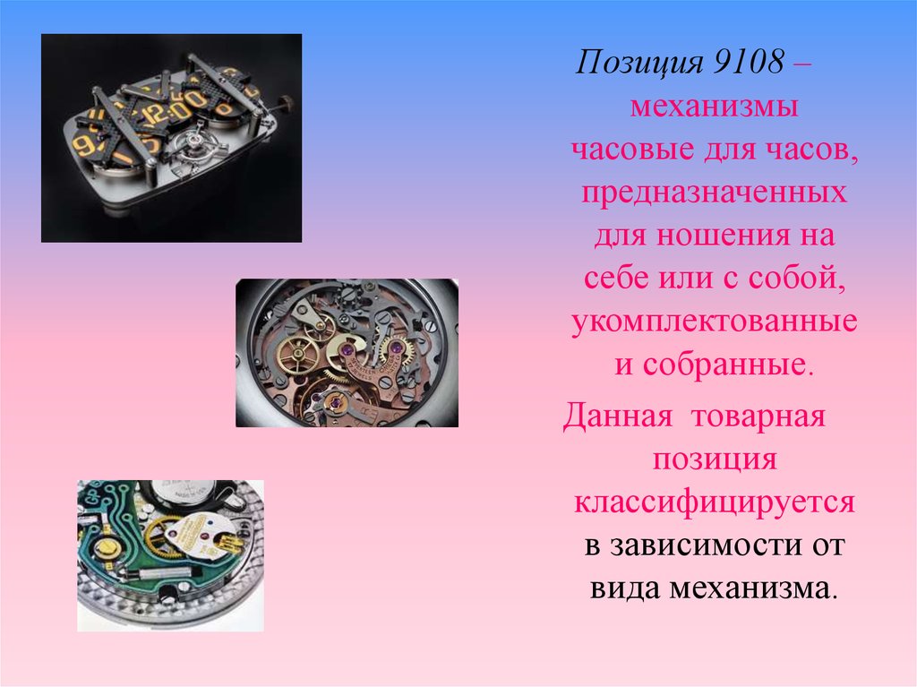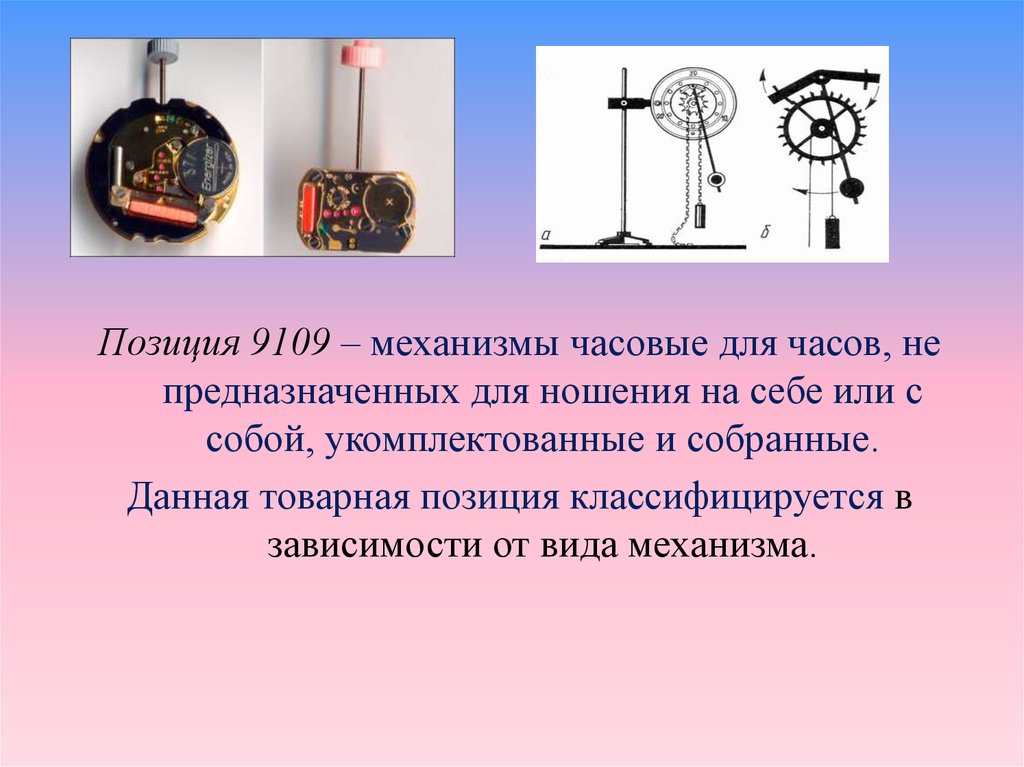 Позиция 9109 – механизмы часовые для часов, непредназначенных для ношения на себе или с
