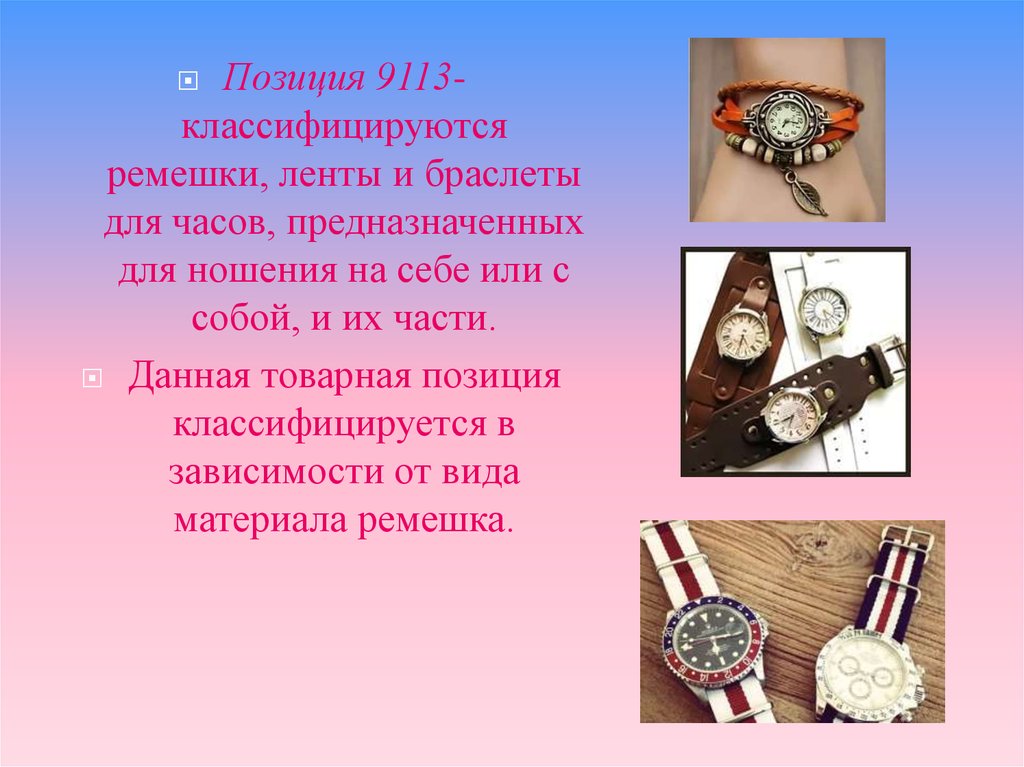 Позиция 9113классифицируютсяремешки, ленты и браслеты