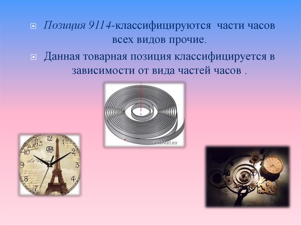 Позиция 9114-классифицируются части часоввсех видов прочие.