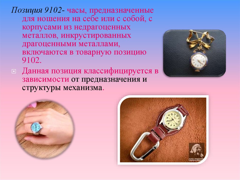 Позиция 9102- часы, предназначенныедля ношения на себе или с собой, с
