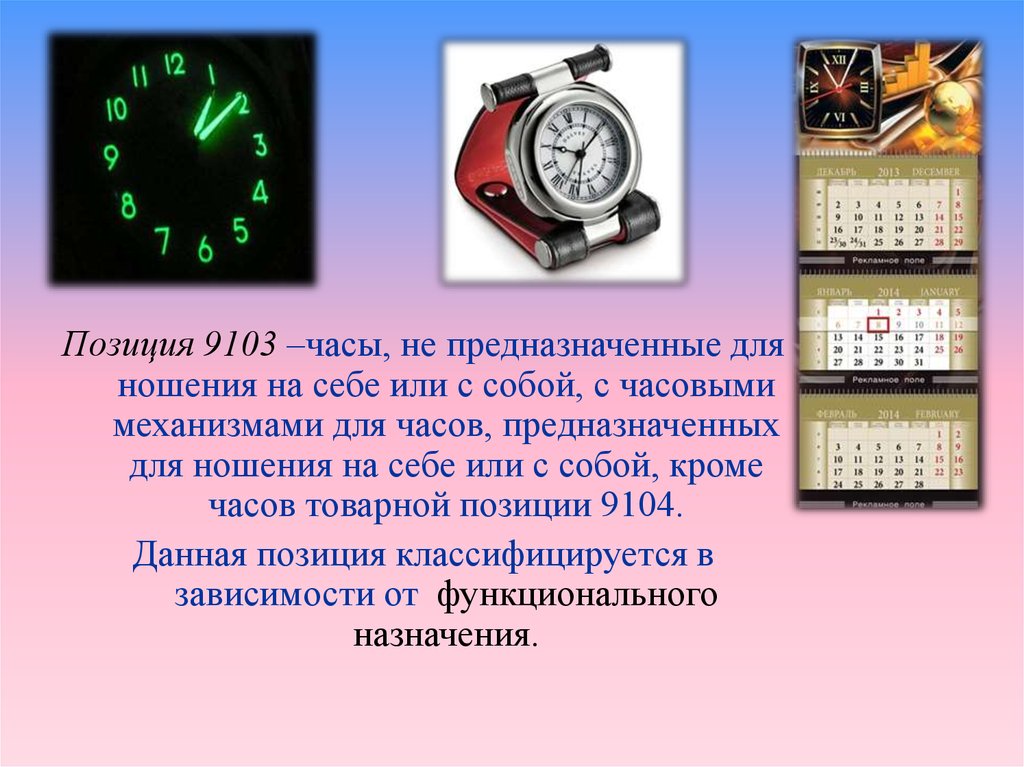Позиция 9103 –часы, не предназначенные дляношения на себе или с собой, с часовыми