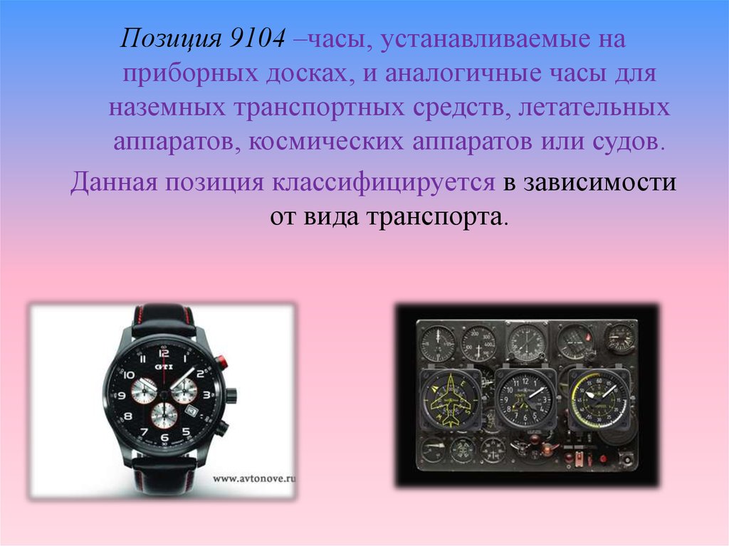 Позиция 9104 –часы, устанавливаемые наприборных досках, и аналогичные часы для
