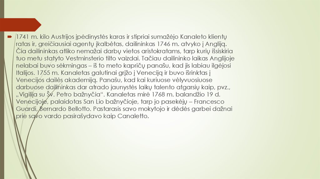 Venecijos dailės akademiją. Panašu, kad kai kuriuose vėlyvuosiuose
