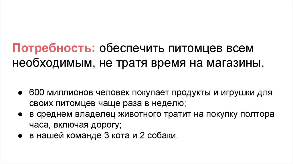 Потребность: обеспечить питомцев всемнеобходимым, не тратя время на магазины.
