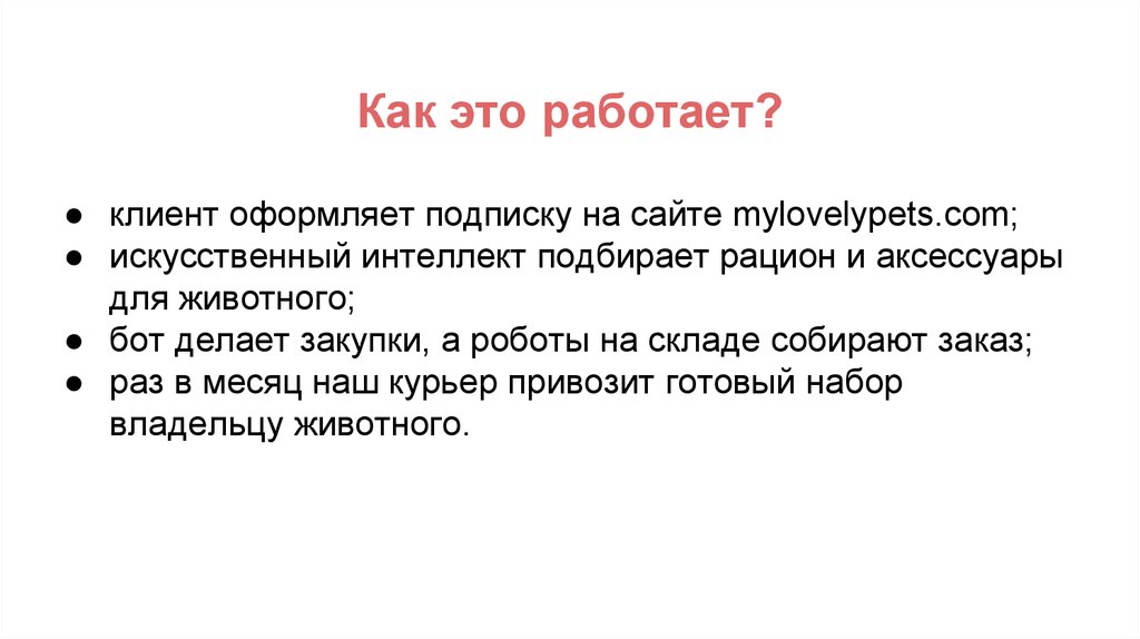 Как это работает?● клиент оформляет подписку на сайте mylovelypets.com;