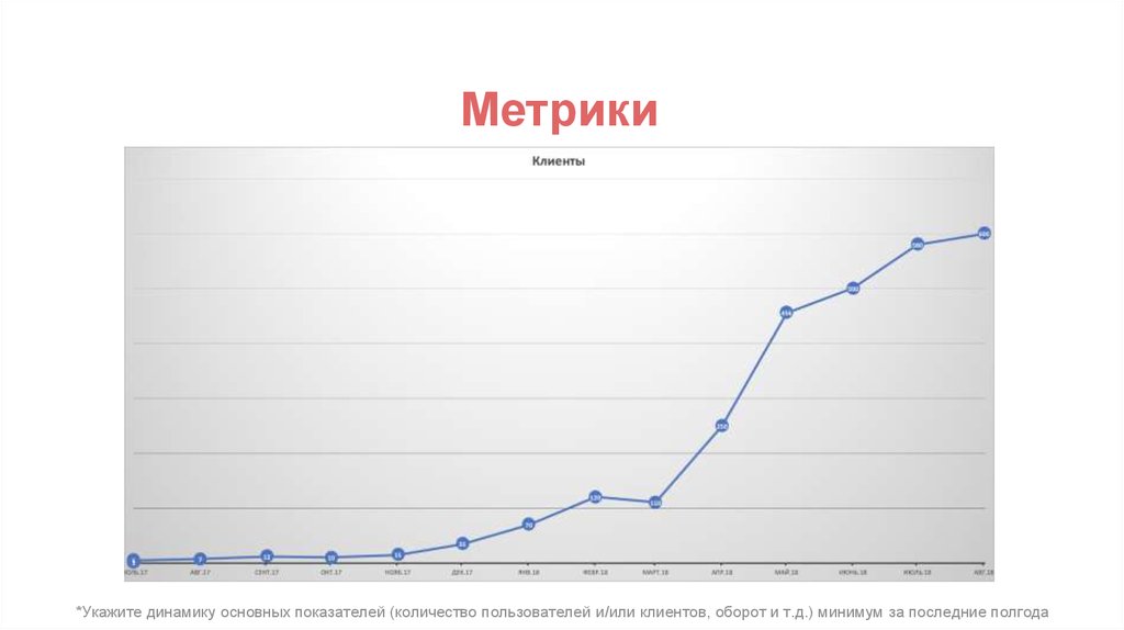 Метрики*Укажите динамику основных показателей (количество пользователей и/или клиентов, оборот и т.д.) минимум за последние полгода