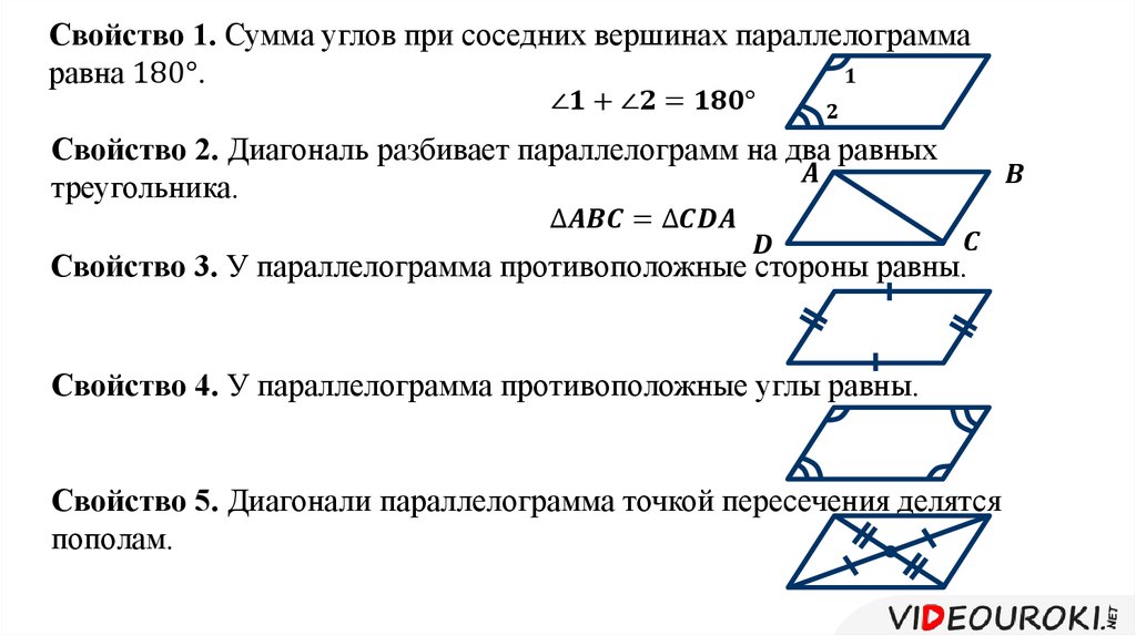 Параллелограмм. Свойства и признаки параллелограмма