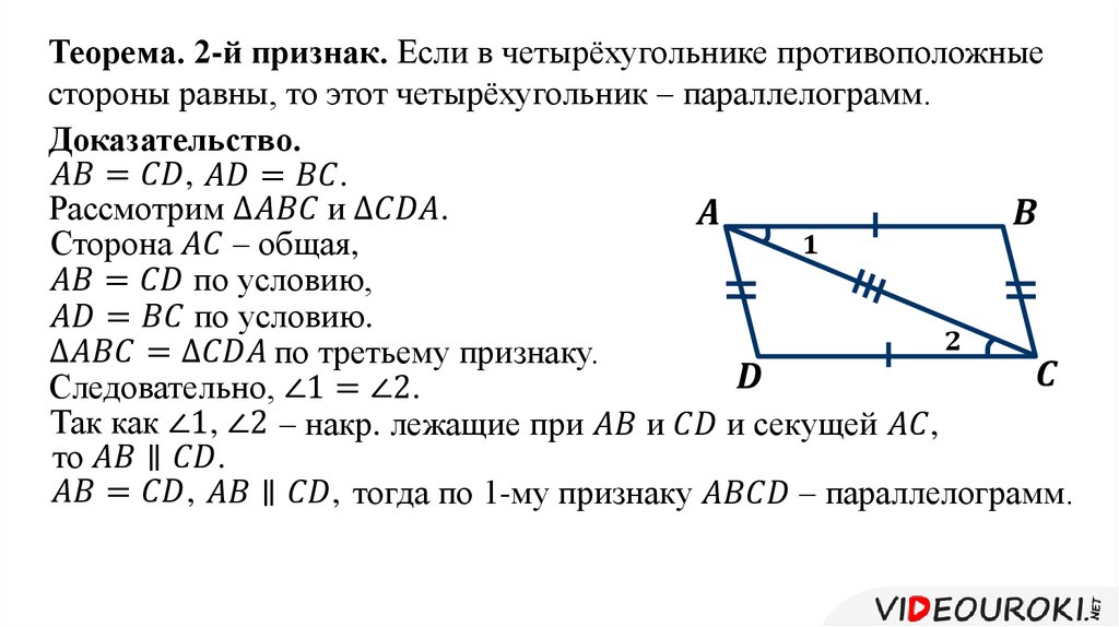 Признаки параллелограмма