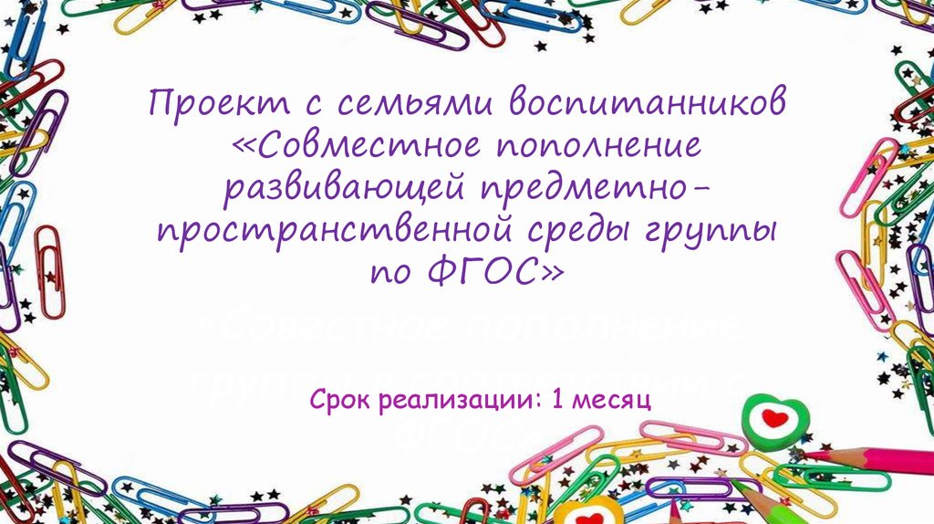 Проект с семьями воспитанников «Совместное пополнение развивающей предметно-пространственной среды группы по ФГОС»