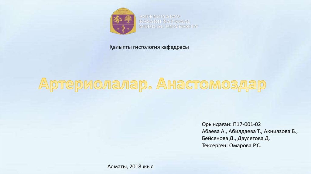 Қалыпты гистология кафедрасыОрындаған: П17-001-02